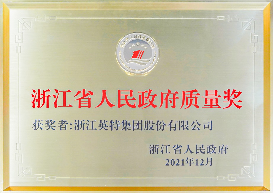 12月26日,全省質量大會在省人民大會堂召開。會議對第八屆、第九屆浙江省人民政府質量獎獲獎單位進行表彰。英特集團總經理汪洋,代表公司領取第八屆“浙江省人民政府質量獎”獎牌及證書。