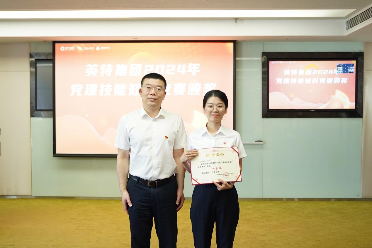 在此前舉行的英特集團(tuán)2024年黨建技能知識(shí)競(jìng)賽中,寧波銷(xiāo)售中心第一黨支部獲得一等獎(jiǎng),英特物流第三黨支部、英特怡年黨支部獲得二等獎(jiǎng),集團(tuán)總部第一黨支部、英特物流第六黨支部、英特醫(yī)貿(mào)黨支部獲得三等獎(jiǎng)。大會(huì)現(xiàn)場(chǎng)對(duì)英特集團(tuán)2024年黨建技能知識(shí)競(jìng)賽和“職場(chǎng)實(shí)盤(pán)”第二季——業(yè)財(cái)智領(lǐng)挑戰(zhàn)賽獲獎(jiǎng)團(tuán)隊(duì)進(jìn)行了表彰。