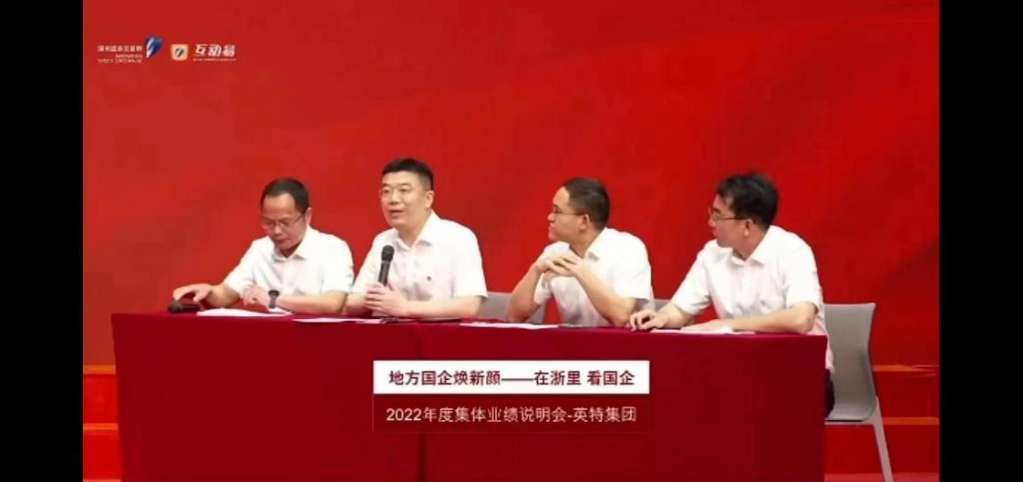 5月17日,深圳證券交易所上市大廳,浙江省國資委聯(lián)合深圳證券交易所共同舉行“地方國企煥新顏——在浙里 看國企”浙江國有控股上市公司2022年度集體業(yè)績說明會暨“走進深交所”活動。浙江省國資委黨委委員、副主任顧濤出席活動并致辭。英特集團作為5家在深交所掛牌的浙江國有控股上市公司代表之一,作業(yè)績說明并集中回答了投資者提問。公司黨委書記、董事長應徐頡,黨委委員、董事、副總經(jīng)理費榮富,獨立董事陳昊(線上),董事會秘書譚江,財務負責人曹德智參加了本次業(yè)績說明會。