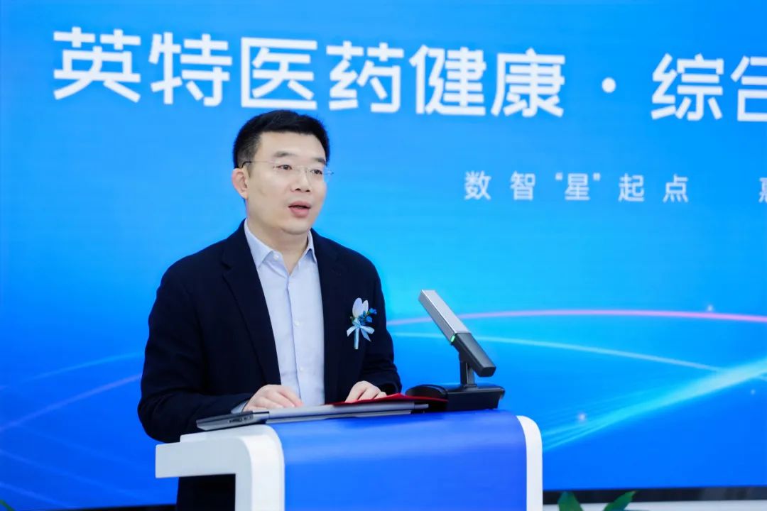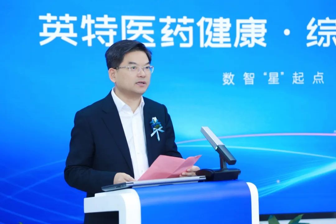 汪洋作旗艦體介紹。領(lǐng)導(dǎo)嘉賓共同為“英特醫(yī)藥健康·綜合旗艦體”開業(yè)剪彩,共同祝?!坝⑻蒯t(yī)藥健康·綜合旗艦體”開業(yè)大吉,未來可期!